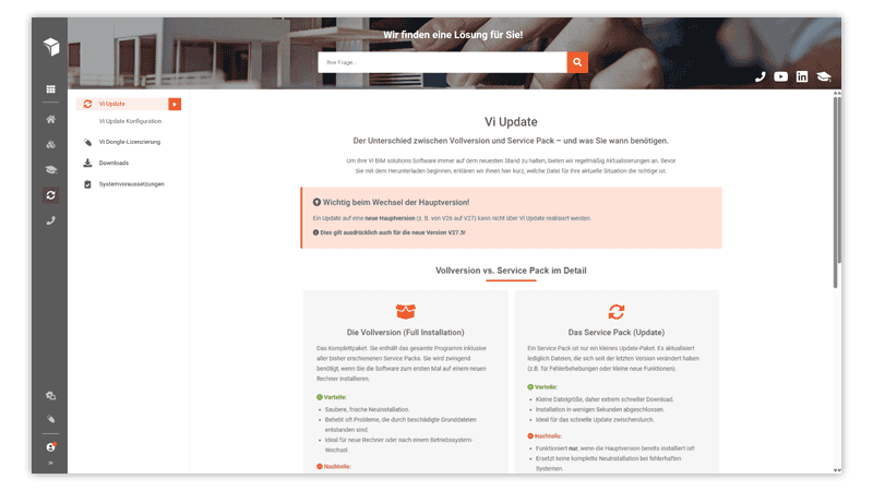 Neu: Prominente Hinweise auf verfügbare AktualisierungenWenn Aktualisierungen für Vi Produkte und/oder den Dongle verfügbar sind, werden diese künftig besonders prominent hervorgehoben. So lassen sich wichtige Updates schneller erkennen und gezielt umsetzen.